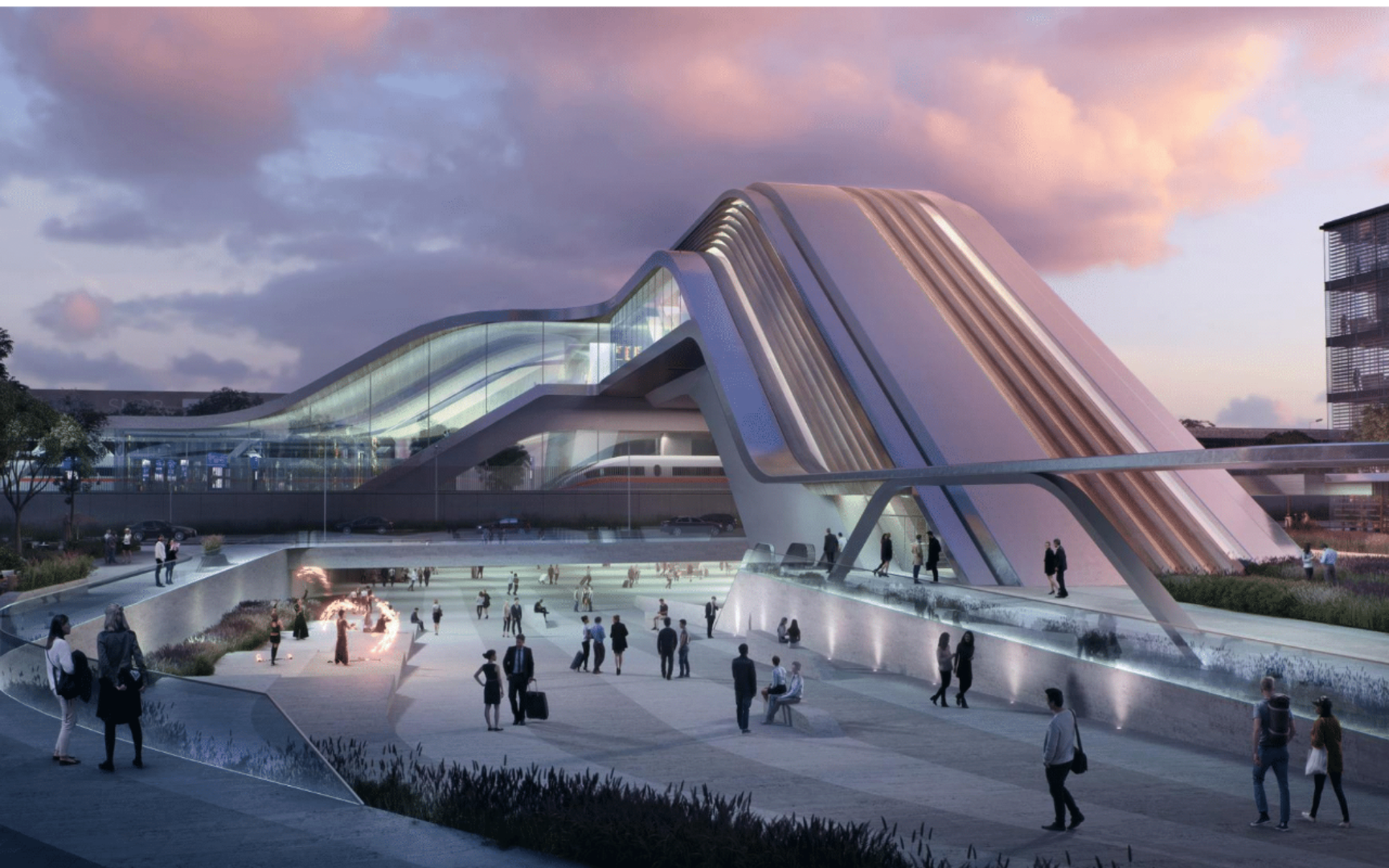 الناقد المعماري أندريس روبيو يصف مشاريع زها حديد على النحو التالي: “تشبه سفن الفضاء، التي تسبح دون تأثير الجاذبية في فضاء مترامي الأطراف، لا جزء عال فيها ولا منخفض، ولا وجه ولا ظهر، هي مبان تظهر وكأنها في حركة انسيابية في الفضاء المحيط”.